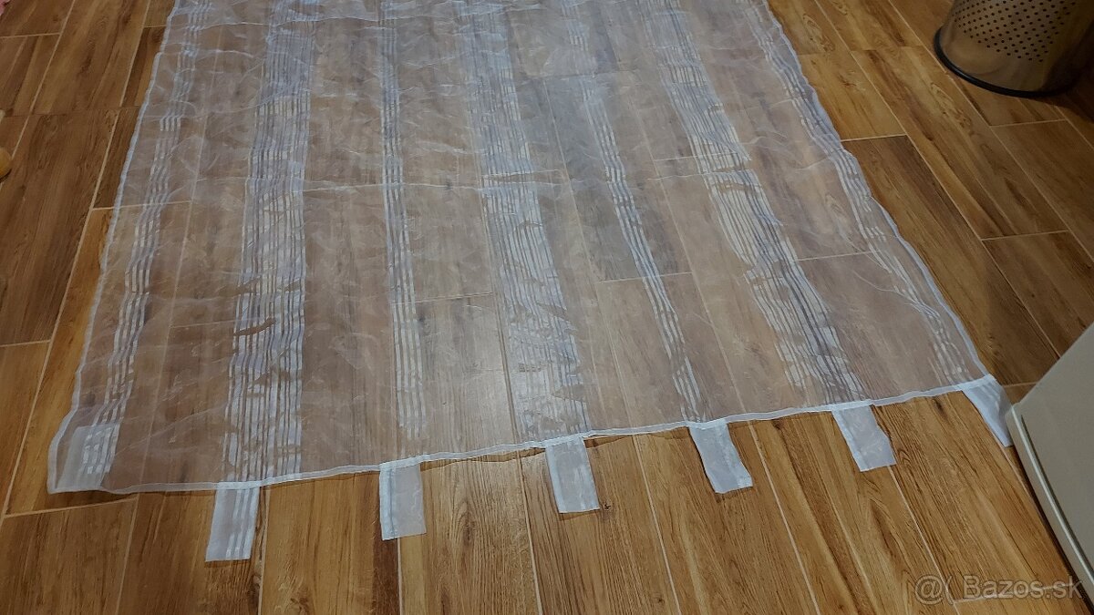 Ponúkam novú, nepoužívanú bielu záclonku s pútkami (10 cm) na zavesenie. Záclonka má jemné sirsie a užšie lesklé prúžky po celej dĺžke.