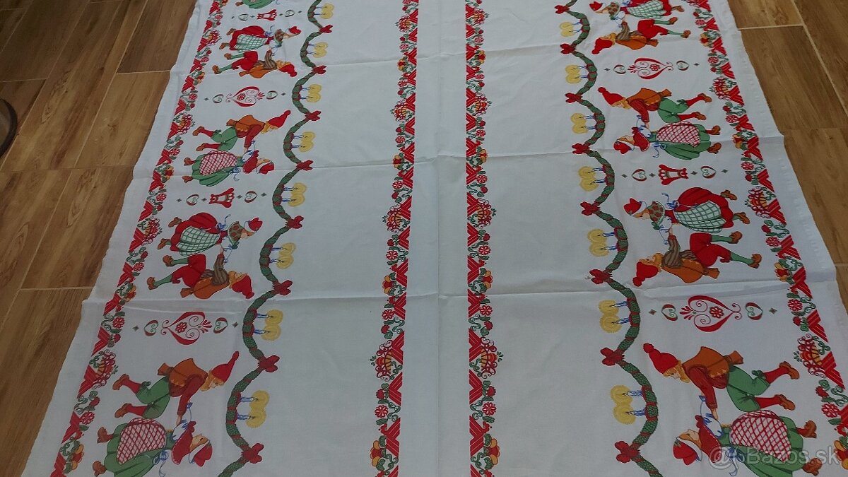 Ponúkam bavlnený, nepoškodený, nespraný obrus-tanečníci, ktorý je možný používať na Vianoce, Hromnice, fašiangy alebo bežné použitie v kuchyni.Vek odhadujem aj na viac ako 30 rokov,bol veľmi málo používaný.