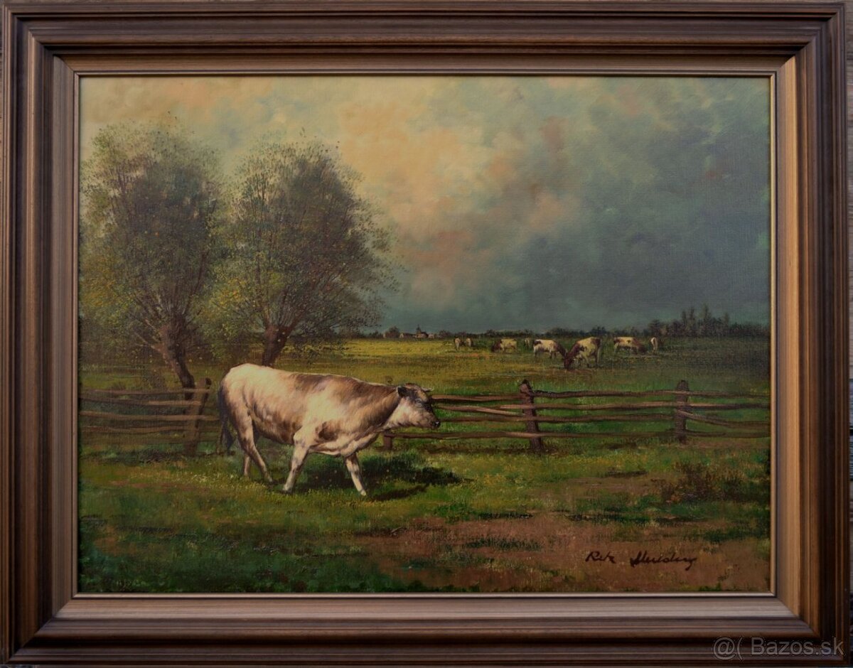 Krásny starý obraz, olejomaľba v drevenom ráme.