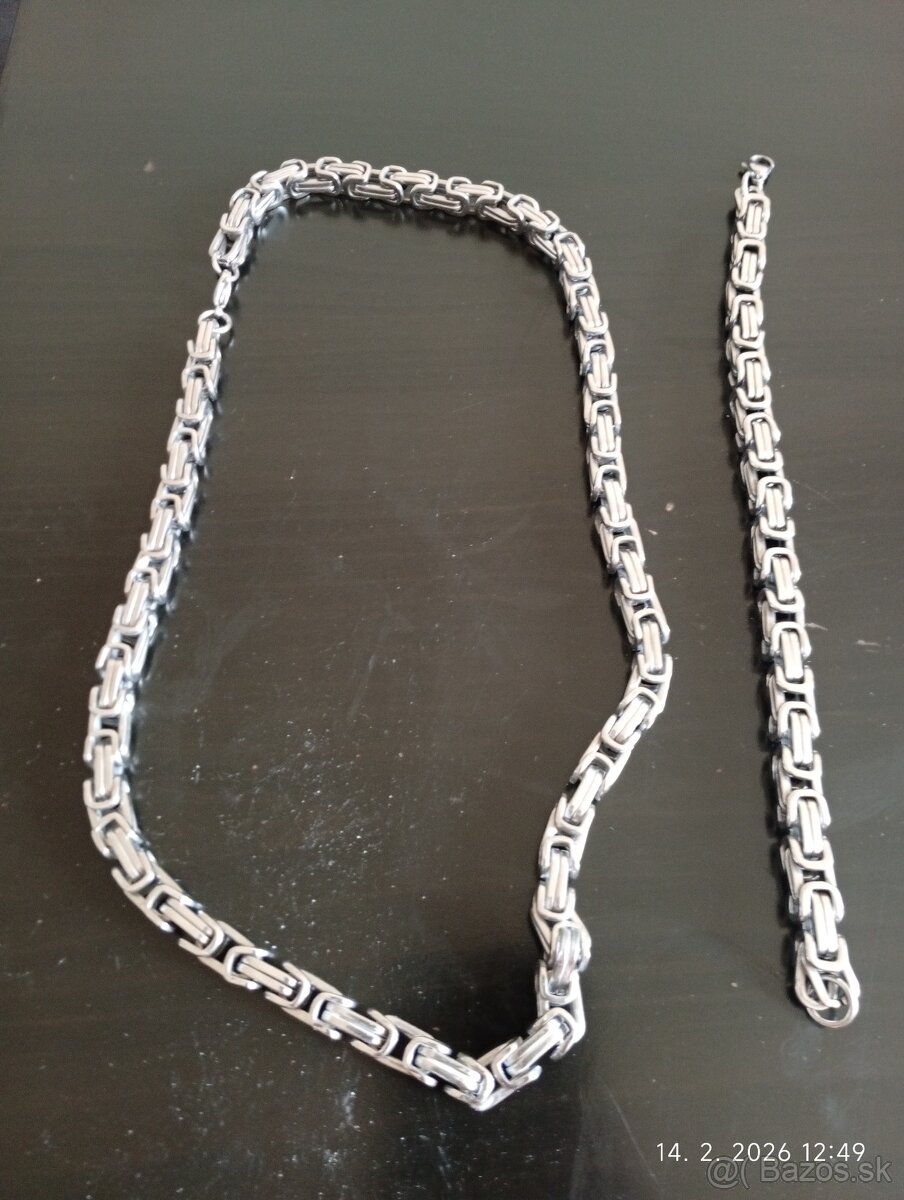 Retiazka a náramok kráľovský vzor chirurgická oceľ - [6.3. 2026]Predám krásnu retiazku a náramok z chirurgickej ocele s pekným kráľovským vzorom. Dlžka retiazky je 57cm a náramku je 21cm.