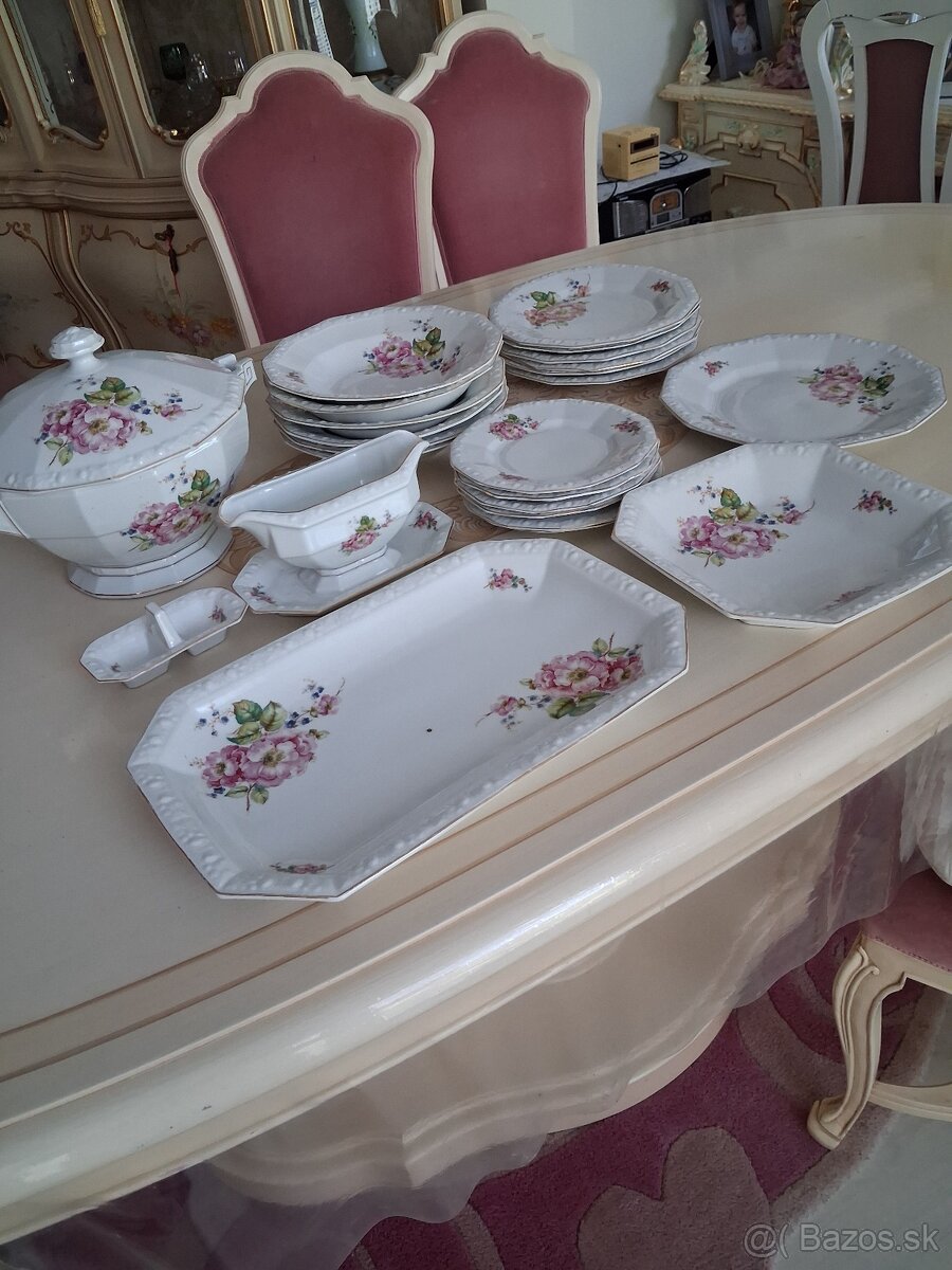 Porcelánová obedová súprava - [4.2. 2026]Predám starožitnú porcelánovú súpravu na osobný odber. Jeden tanier chýba.