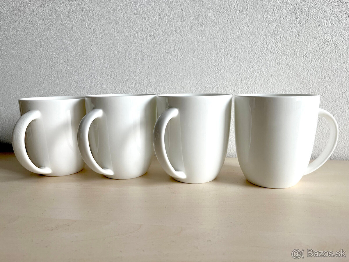 Predám štyri biele porcelánové hrnčeky zn. Maxwell & Williams "Cashmere". Výška 10,5 cm, priemer hore 9 cm. Ako nové. Cena spolu za všetky 5 eur.