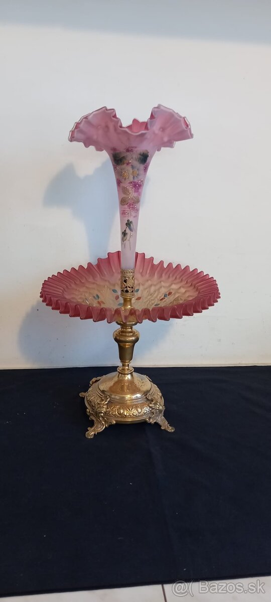 Predám starožitnú žardinieru so sklenenou misou a vložkou na kvety.Sklo ručná maĺba.Cena 330€. Osobný odber v Ba.