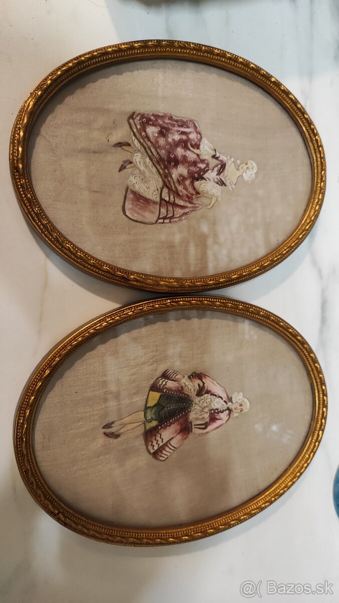 Secesné párové obrázky,ručná maľba na hodvábe -90€.starý obrázok trpiaceho Krista 40€.