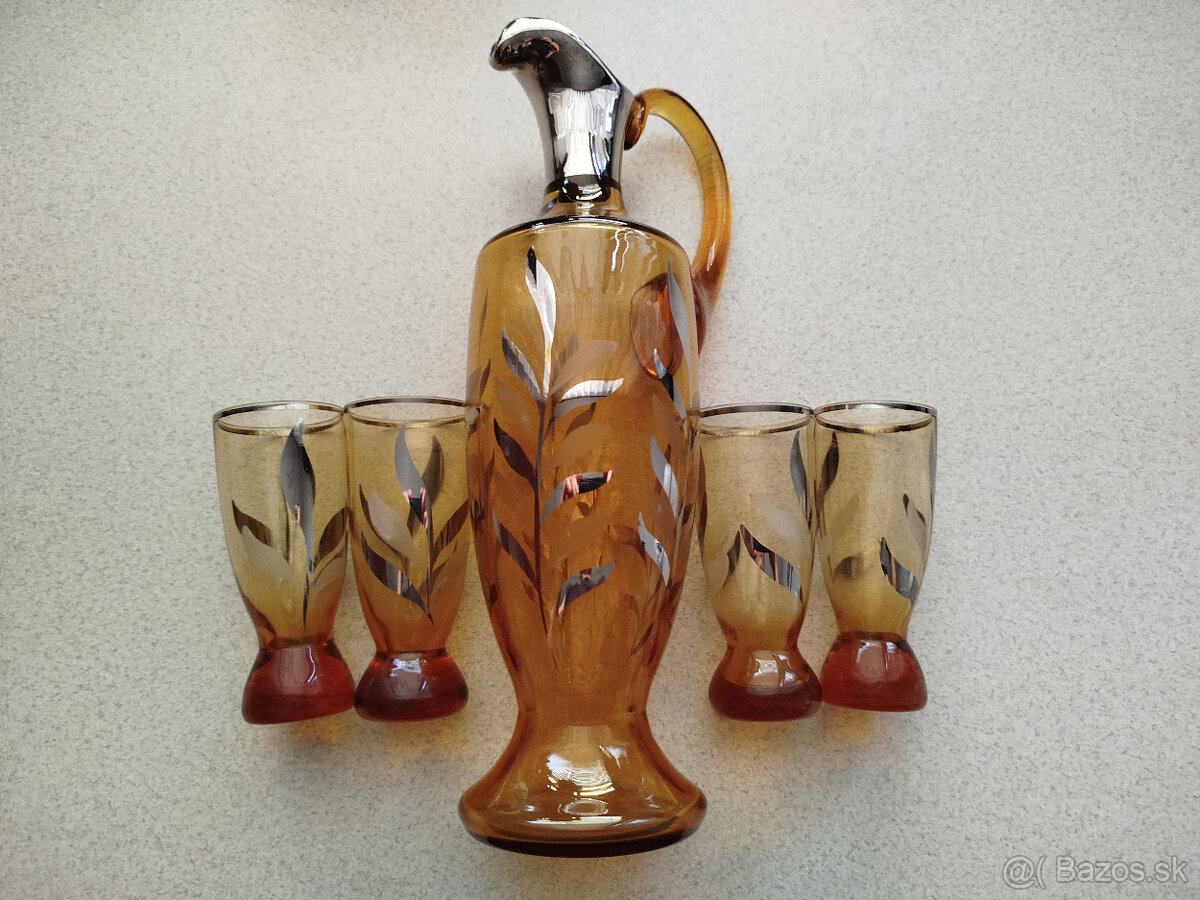 Karafa výška 24,00 cm, pohár výška 6x 9,50 cm, Úhrada vopred na účet , alebo osobný odber KE. Kontakt emailom, t.č neplatné.