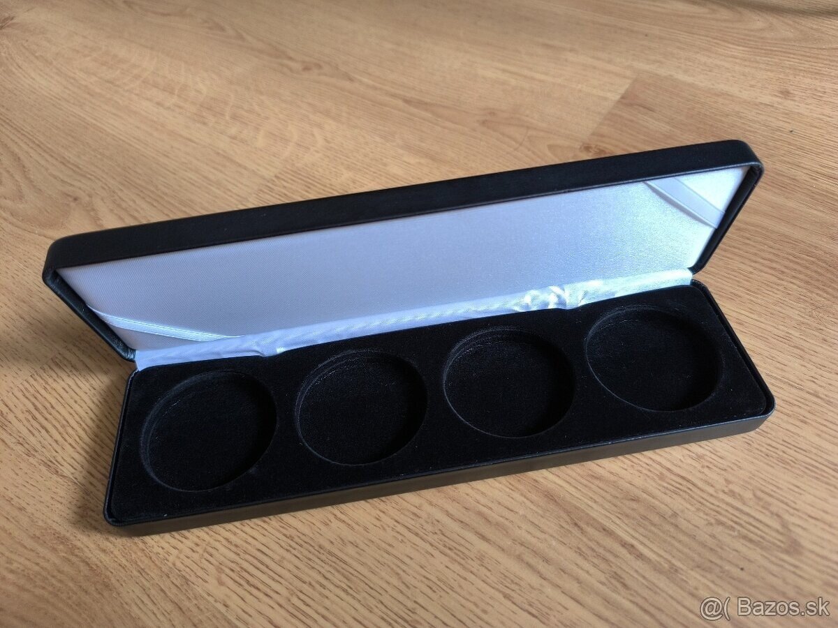 Predám novú nepoužitú etue - nobile na mince,4 x uni caps L , čierna . Rozmer otvorov 52 MM.Cena 10 eur.