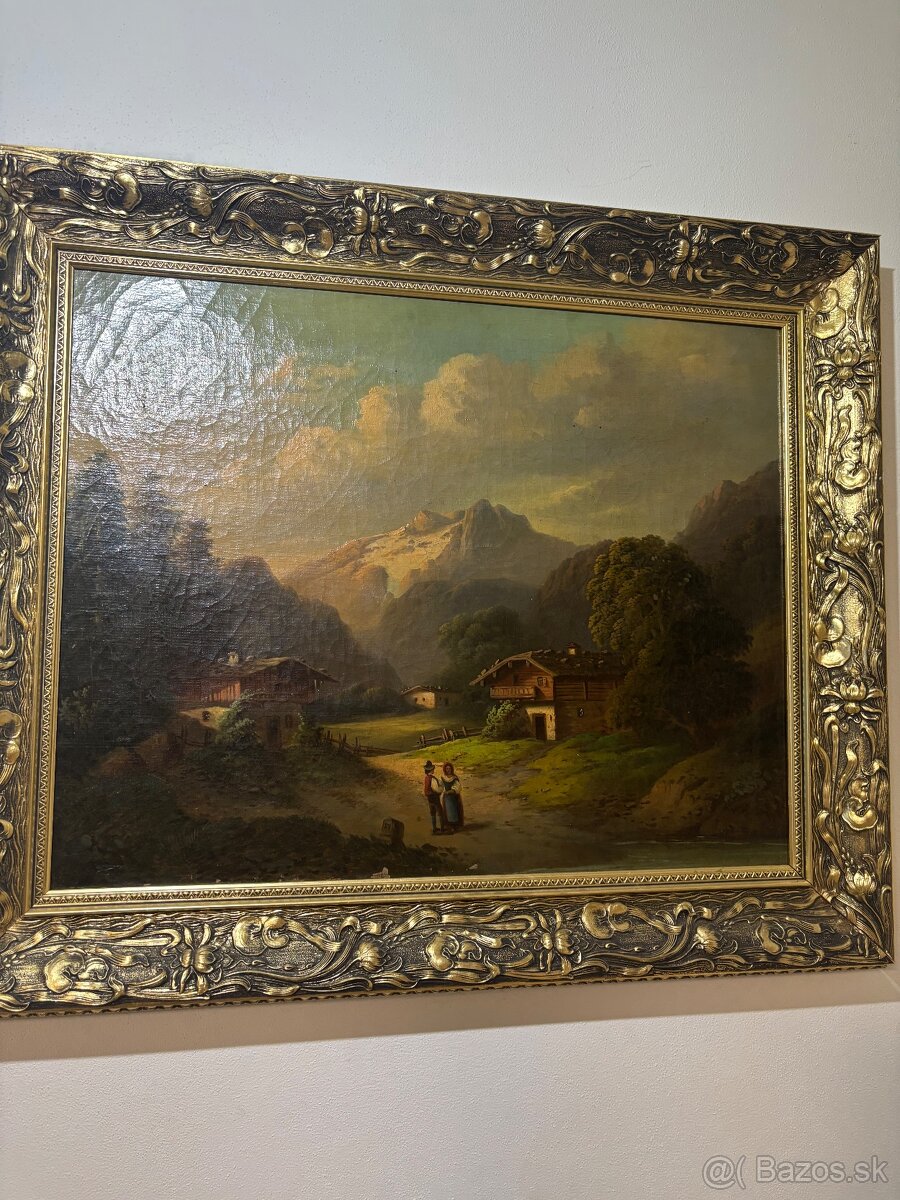 Obraz - olejomaľba - [14.2. 2026]Krásny starý obraz, olejomaľba v drevenom ráme.