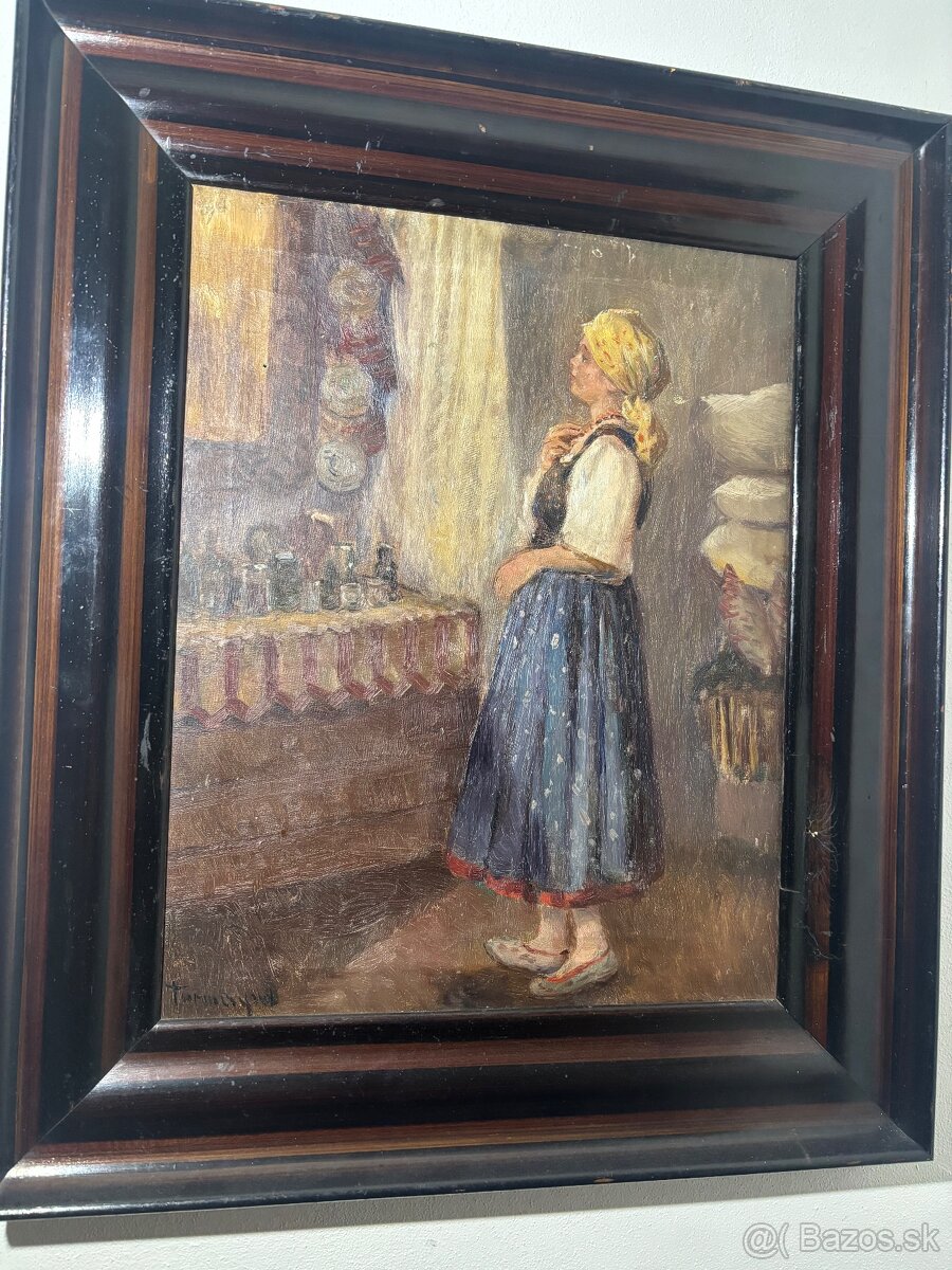 Obraz - olejomaľba - [14.2. 2026]Krásny starý obraz, olejomaľba v drevenom ráme.