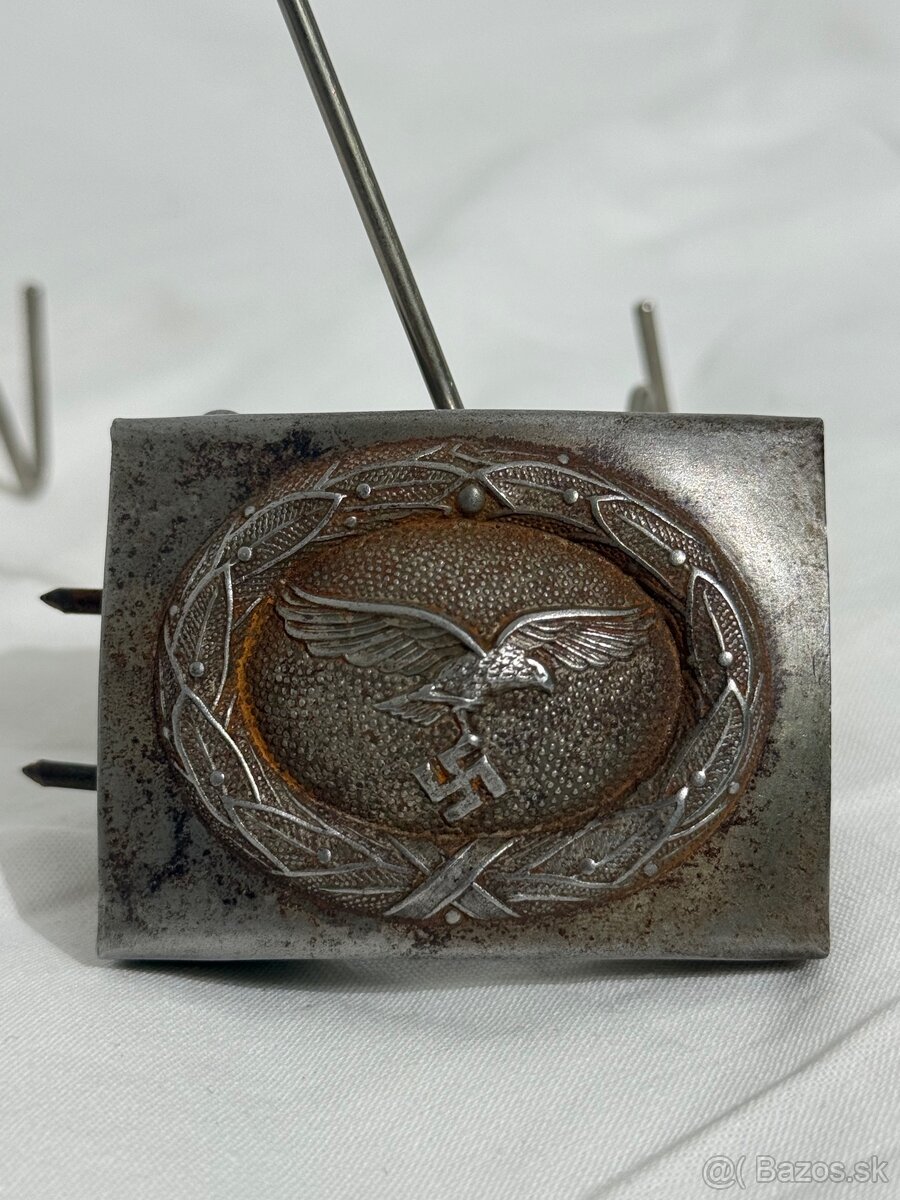 Predám originálnu opaskovú pracku nemeckého letectva Luftwaffe z obdobia druhej svetovej vojny. Oceľové vyhotovenie s dobovou patinou, zadná strana so zachovaným hákom a tŕňom, výrobné značenie J.F.S. Autentický zberateľský kus.