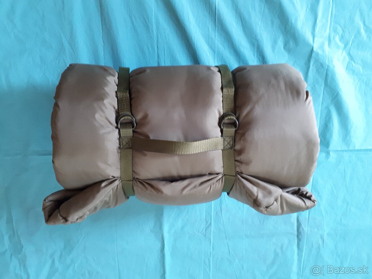 Spací vak typu múmia je so zipsovým zapínaním v strede prednej strany. Vnútorná izolačná vrstva je podšitá podšívkou a súčasťou je aj hygienická vložka, ktorá sa dá vybrať a oprať. Na zbalenie sa používajú našité popruhy. K spaciemu vaku je aj spodná plachta viď foto. Cena 40 Euro