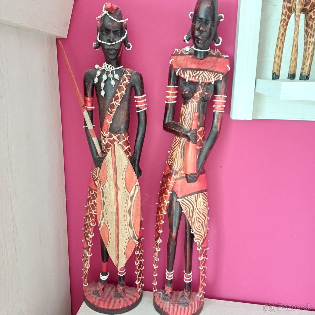 Predám drevené sošky Masajov. Výška sochy 65cm.