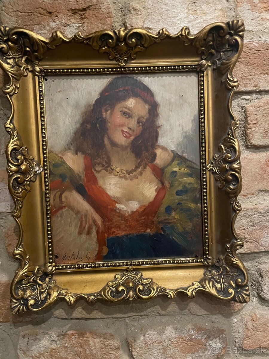 celkoví rozmer /35x30 cm/olejomalba na doske /na doske sú malé dierky vid foto
