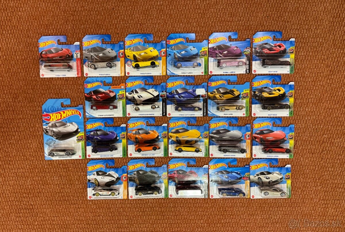 Predávam nasledovné Hot Wheels modely , je to mix short a long card modelov značiek Bugatti a Pagani a Koenigsegg :