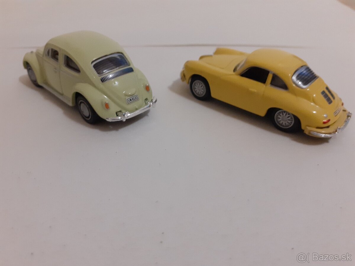 Predám nepoškodené a nehrané modely aut Porshe a VW Beetle chrobák v mierke 1:72. Cena 6,50 EUR kus.