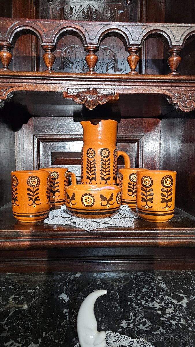 4.Maľovaný džbán, na spodnej časti puknutý + miska má dva malé oťuky, cena spolu 2ks/ 7€+pošt