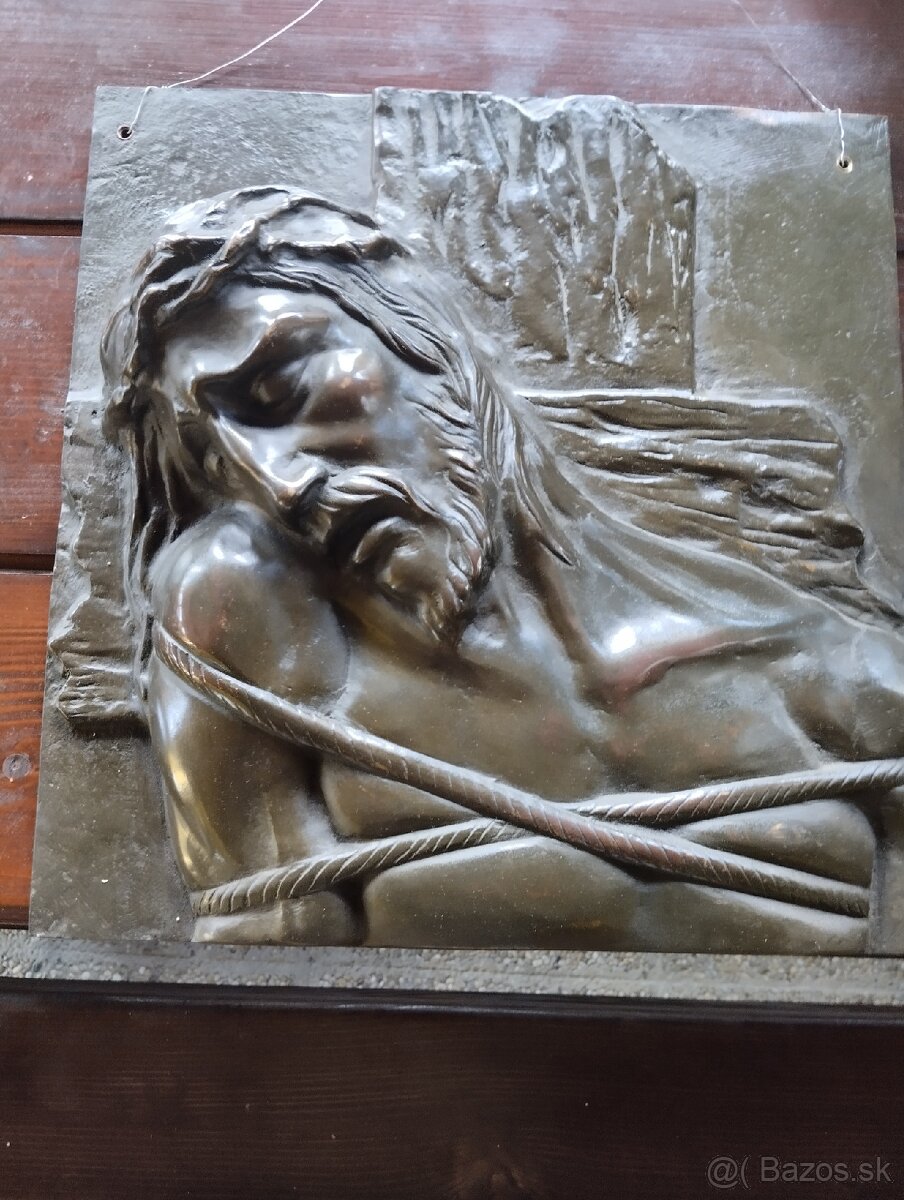 Ikona bronz, rozmery 38x38, váha 7.5 kg, cca 1950