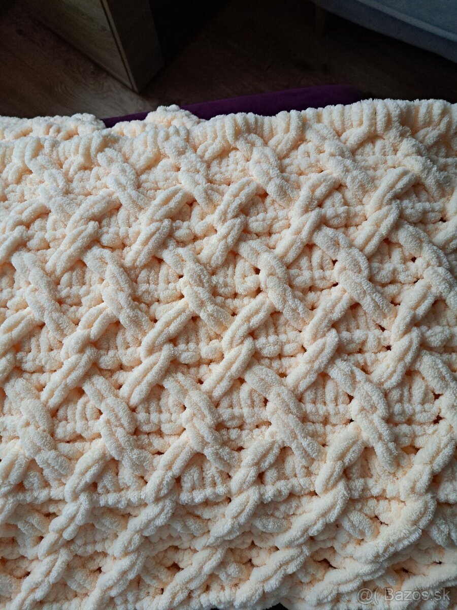Jemnučká,mäkkučká deka z Alize Puffy vlny setlomarhuľovej farby,rozmer 160 X 210 cm