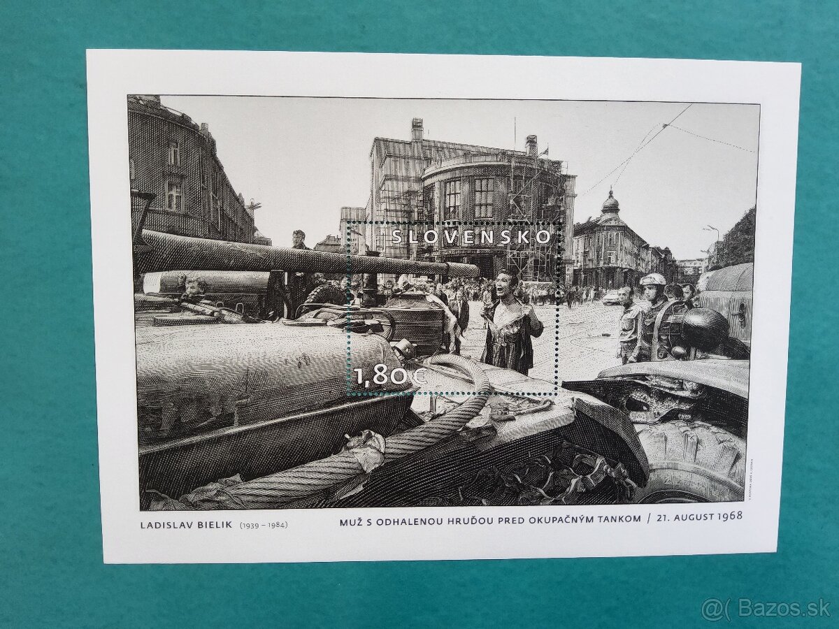 Znamka Muz s odhalenou hrudou pred okupacnym tankom 21.august 1968 3Eur