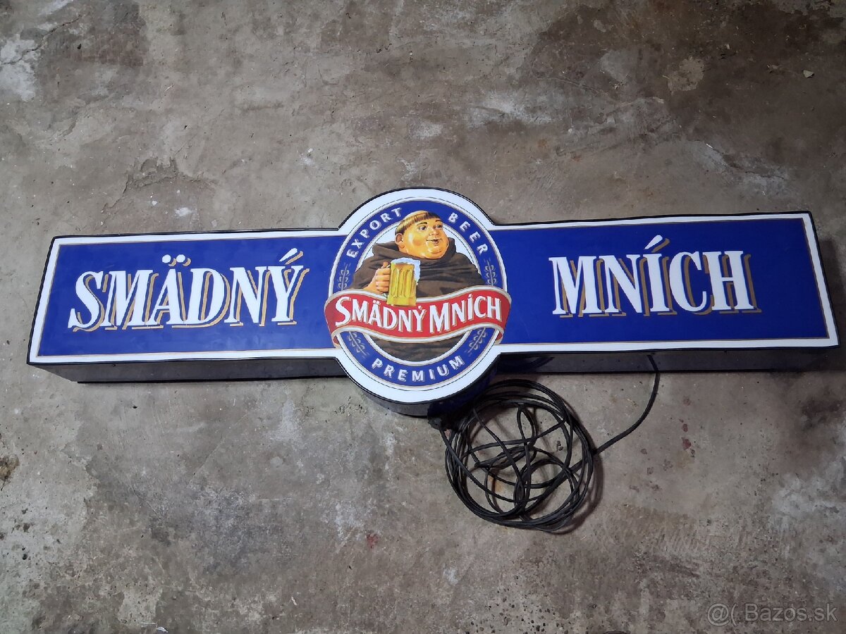 Osvetlená tabuľa smädný mních. Všetko je funkčné. Originál stav...veľmi zachovalé. Ako som pozeral nikto takéto niečo neponúka. Ma to starožitnú hodnotu. Vhodné do obývačky ako funkčný dekor alebo do garáže...