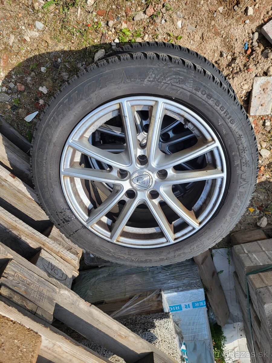 5x108.Stredova diera 57 mm Predam Al disky s pneu.Spolu 4ks. 205/55 R16. Obute. Pneu starsie. Dezen ok