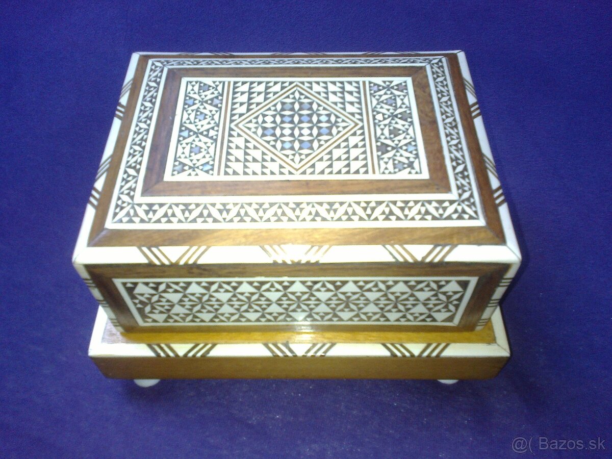 Predám starý hrací box na cigarety (plne funkčný) rozmery cca: 17x13x10cm, nožičky sú pravdepodobný vymenene. Zo spodu je nalepka Lily Marlene. Cena 40€, T.č. neplatné, viac info mailom.