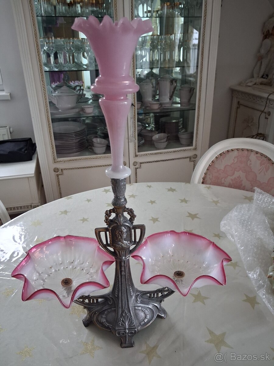 Starozitna zardiniera rarita - [3.1. 2026]RARITA Starozitna zardiniera z 19.storocia so sklenenou misou bez otukov zdobena zlatymi kvetmi a stojanom z postriebrenej alpaky. Vyska 22cm a priemer 26cm. Podobne menej zdobene aj poskodene idu za vyssie sumy (vid foto). Pozri aj dalsie moje inzeraty. Bratislava