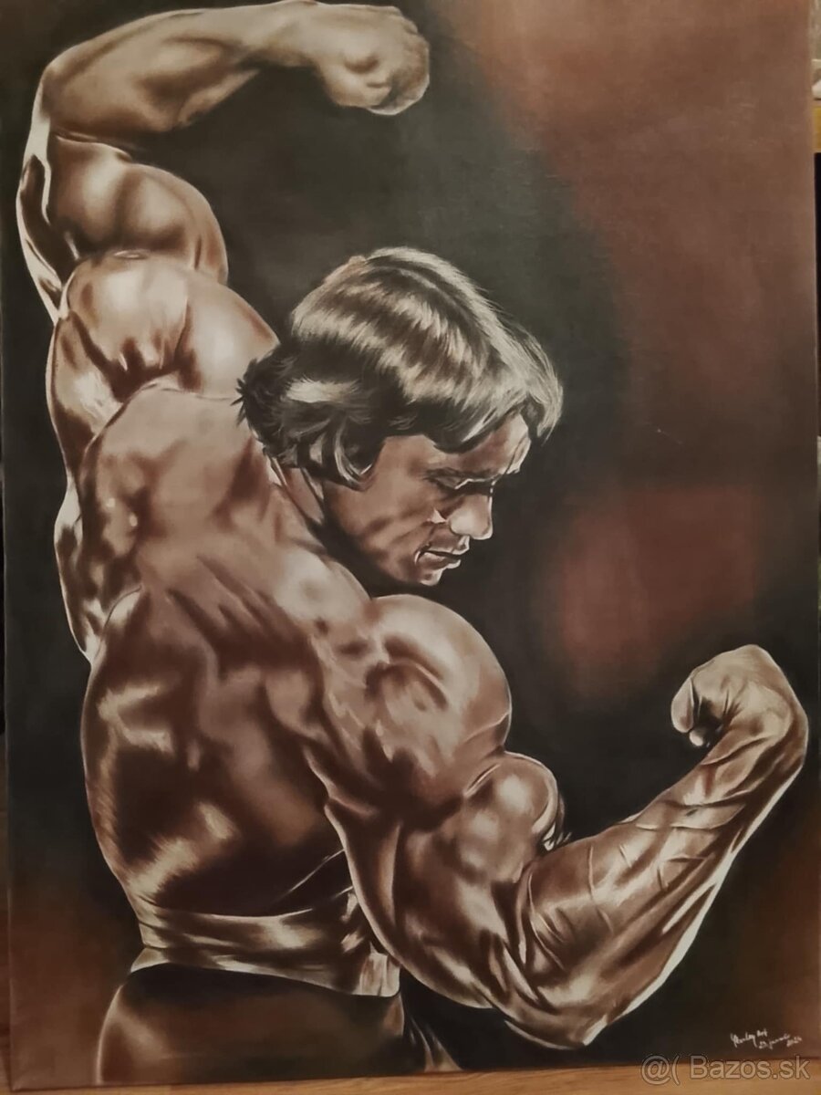 Rucne malovany obraz - [1.2. 2026]Rucne malovany obraz arnold schwarzenegger 50x70cm. Original akryl na platne.