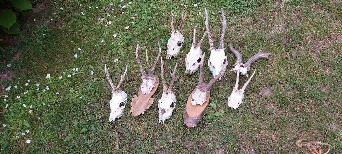 3 ks srnčie parohy, 2 ks obrázky výška 26 cm, 1ks podložka pod trofeje výška 38 cm, šírka 23 cm. Všetko za 50€.