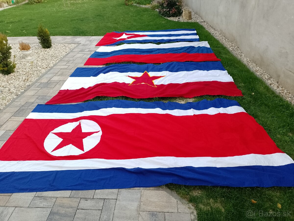 Predám rôzne zástavy Severná Kórea predaná, Juhoslavia predaná, Rusko, Kuba rozmer 290cm x 150cm vlajky sú šité, kvalitná látka aj práca, treba si ich nechať vyčistiť biela je na miestach zažltnutá cena za kus 30€