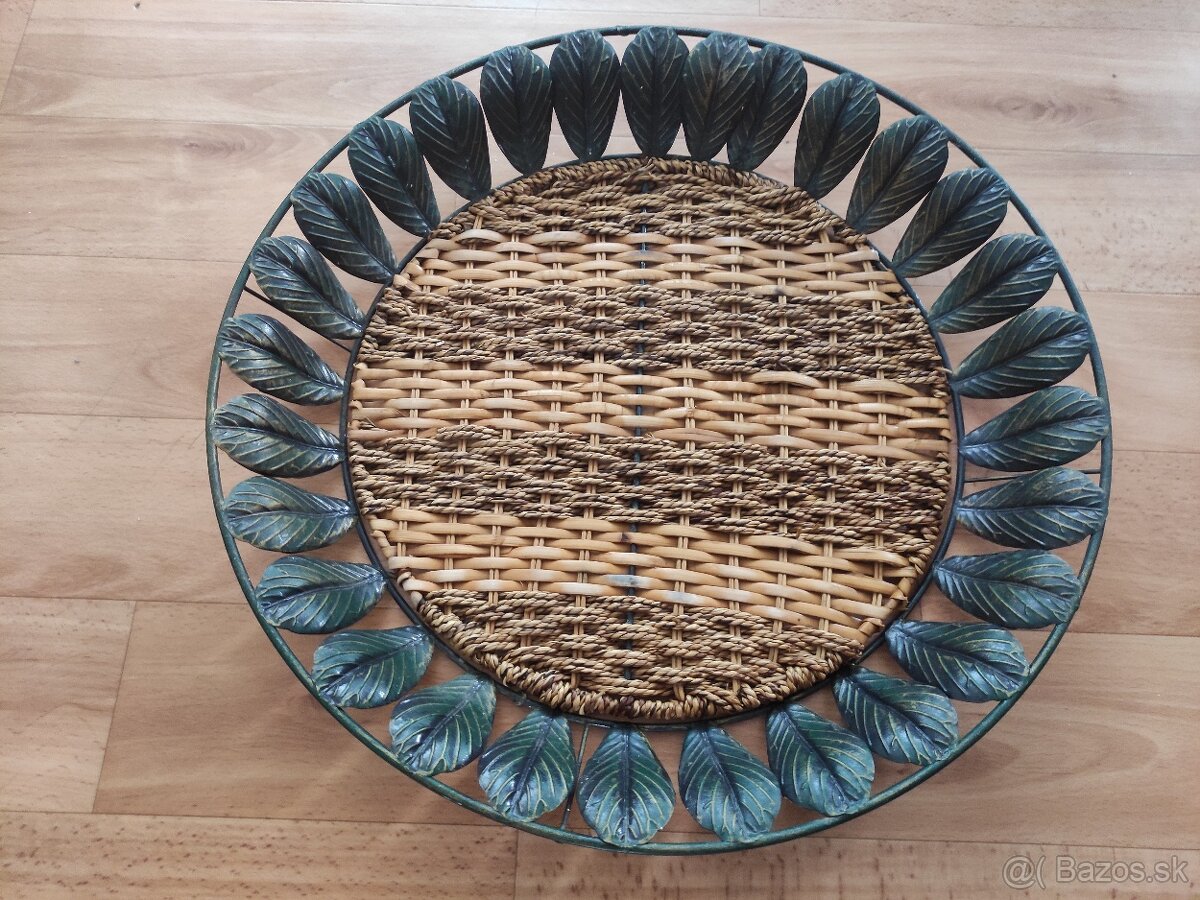 Predam kovovy podnos, alebo tacku. Velmi pekny, bezchybny stav. Vnutro prutene, ram kovovy. Vyska 6 cm, priemer 44 cm. Pri vaznom zaujme poslem lepsie fotky a pri rychlom jednani je mozna zlava, piste na mail.