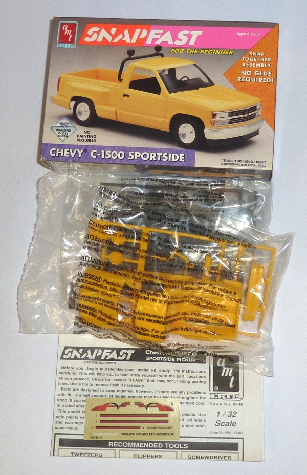 Predám nezložený plastikový model automobilu Chevy C-1500 Sportside v mierke 1/32. Model je kompletný v stave nového.