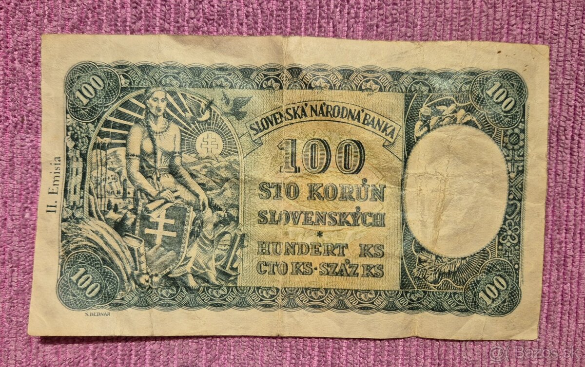 Predám sto koruny Slovenské. Vydanie, séria a stav vidieť na fotke.