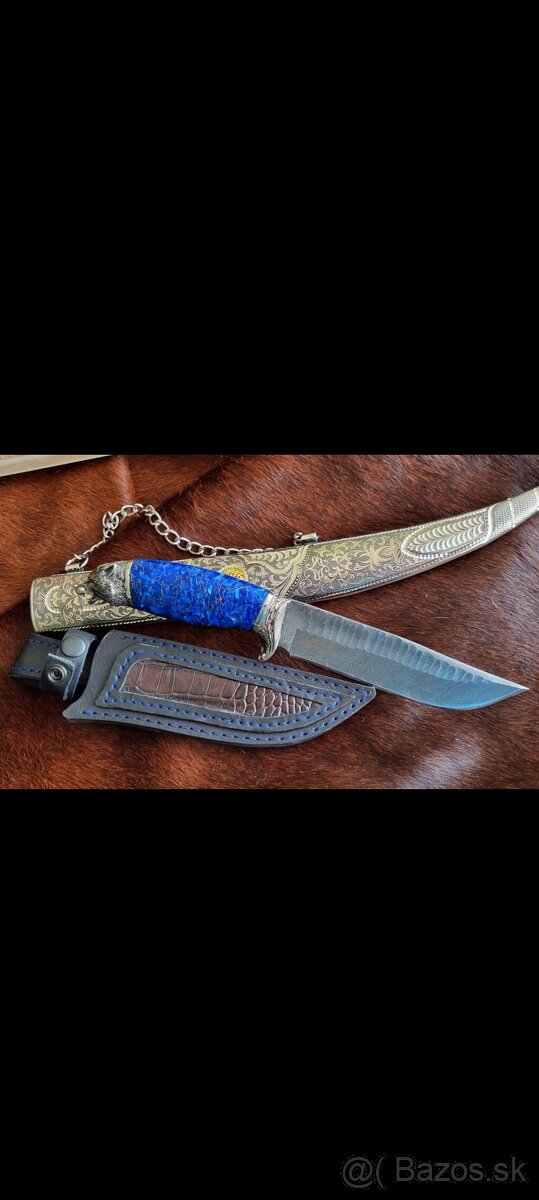 Predám nôž Borz po čečenský znamená hlava vlka damaškova oceľ priamo z Ruska , ručne robené zdobené hlava vlka krásny nôž krásna výroba presné parametre noža nikdy som nič nerezal ani papier nič netknute ostrie nôž je krásna výroba mám ktomu certifikát plus drevená kazeta nôž patrí kategoria chladné zbrane iba jeden sa dostal na Slovensko ten môj nôž je pekné uložený stal 550 za 450 €