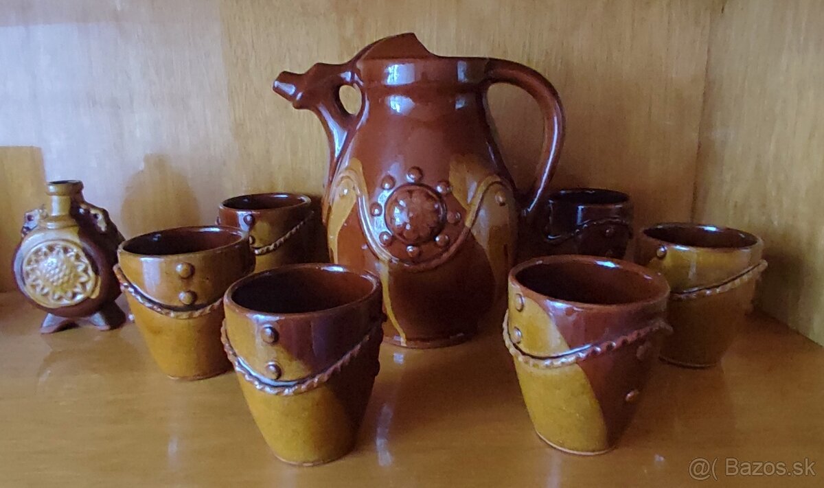 Retro keramická súprava – džbán + 6 pohárov + fľaštička