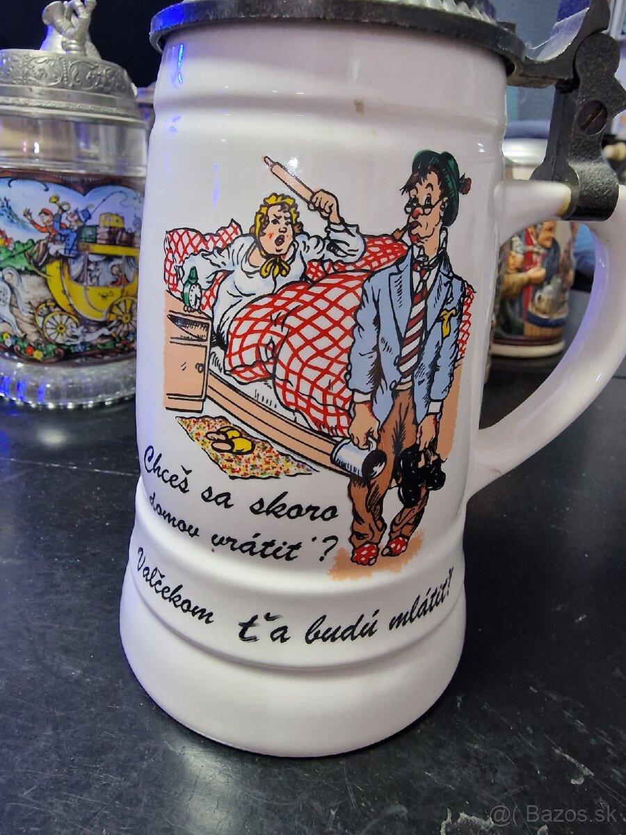 Pivný krígel - [19.2. 2026]Predám veľmi pekne dekorovaný kameninový pivný krčah (krígel) s viečkom. Rozmery a ďalšie fotky na požiadanie. Pozri aj ďalšie inzeráty rozpredavam zbierku krčahov.