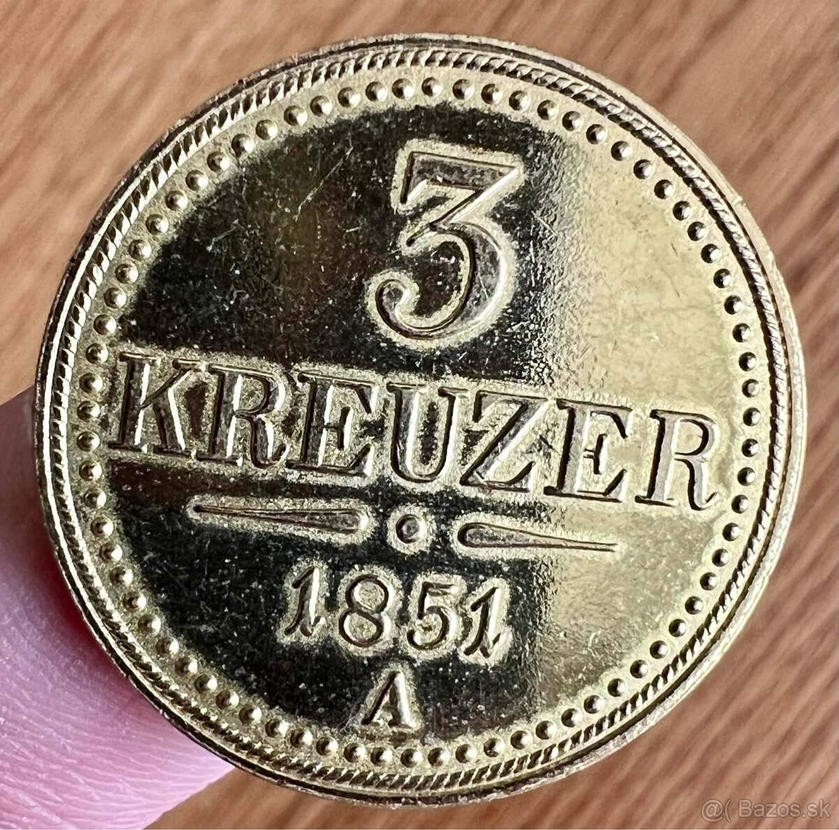 3 Kreuzer 1851 A - Viedeň (pozlátený)