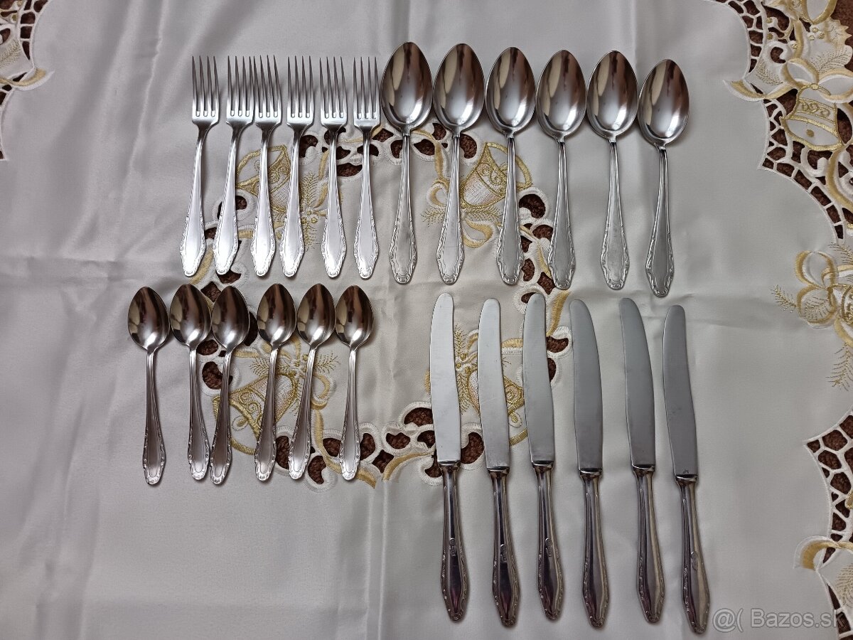 Ruský príbor Nerž - [3.2. 2026]Ponúkam na predaj ruský príbor Nerž, 24 dielná súprava, NIE JE to striebro, používaný stav viď foto ( potrebné vyčistiť) cena 55 € + poštovné alebo osobný odber v KE