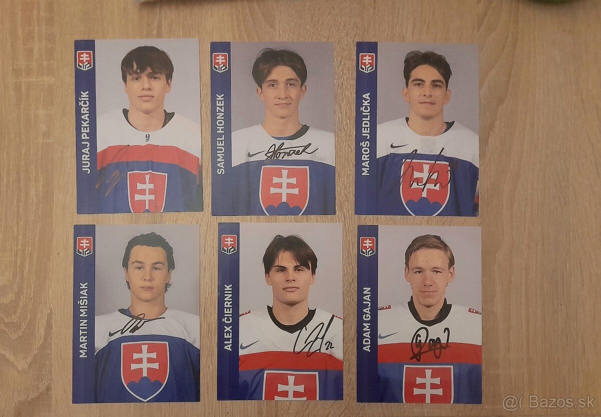 Predám hokejové karty s originál podpismi - Adam Gajan, Maroš Jedlička, Samuel Honzek, Martin Mišiak, Alex Čiernik, Juraj Pekarčík.