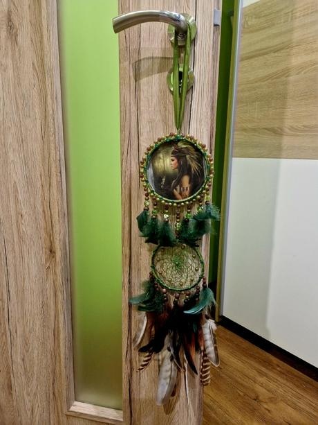 Predám pre zberatela lapač snov nakoľko sa nam už dizajnovo nehodi posúvam ďalej.Priemer kruhu lapača je 14 cm a na výšku má 80 cm po šnúrku.Na lapači je vyobrazena Indiánka s vlkom.Cena 35€+poštovné