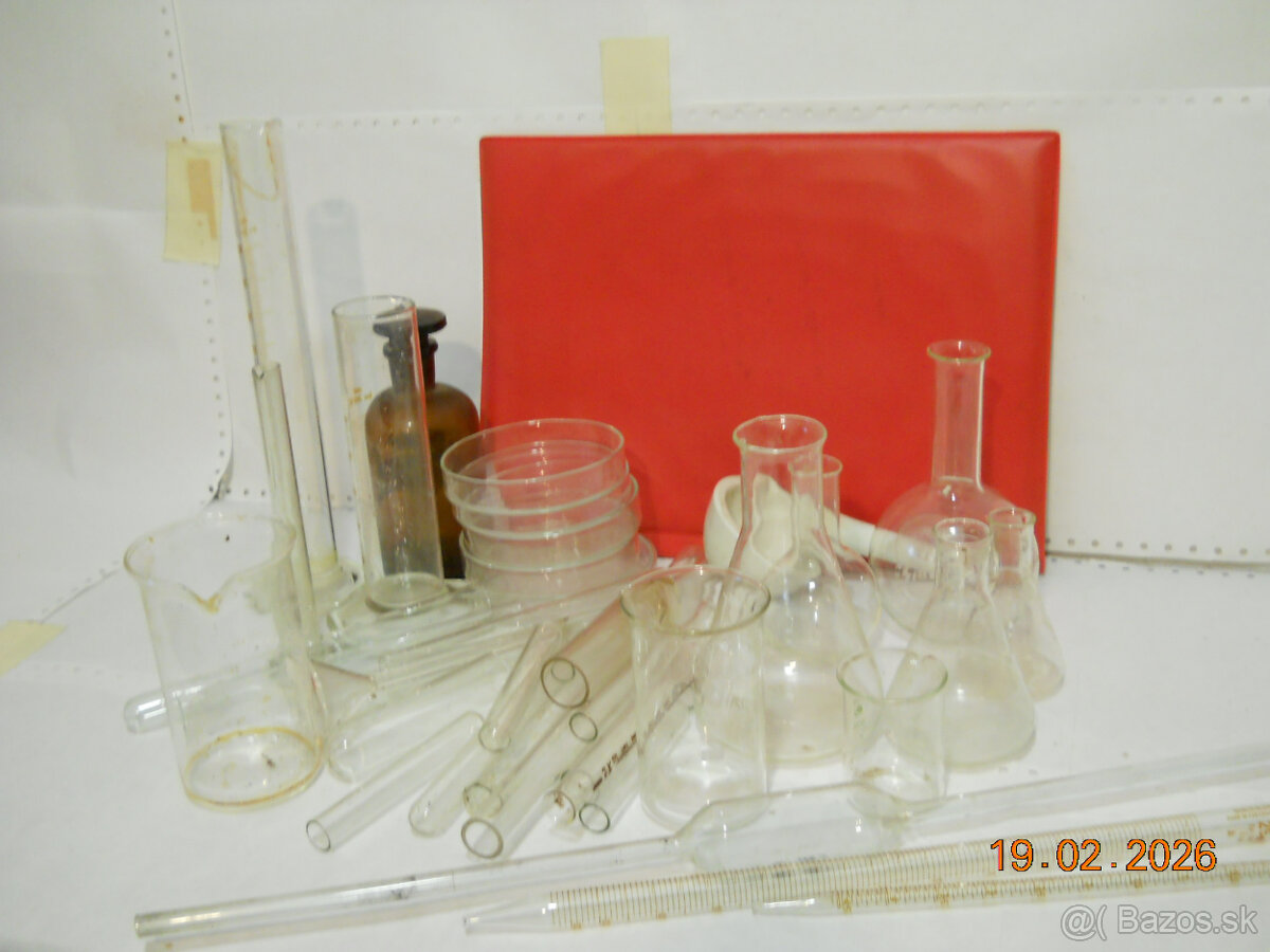 Predám laboratórne sklo ako je vyobrazené. Predám chemické upínacie náradie podľa obr.