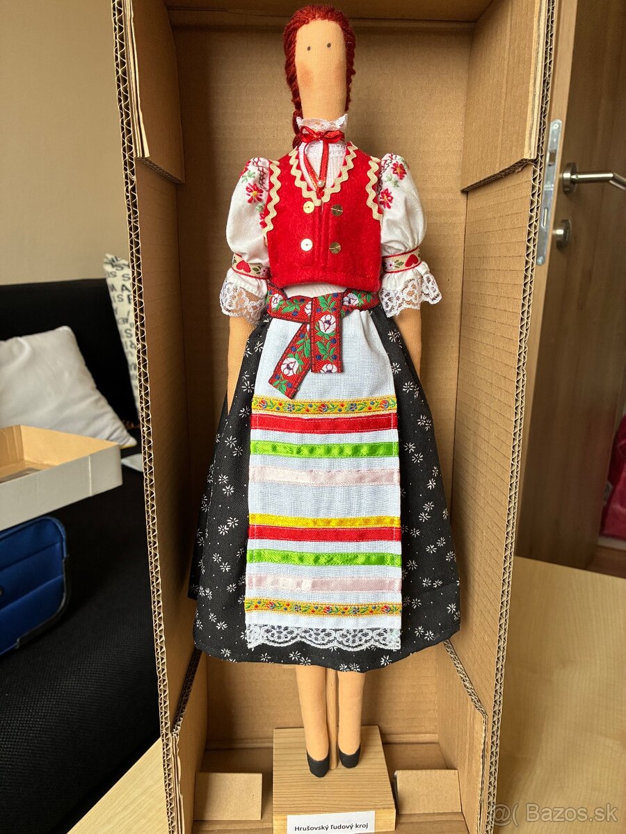 Celotextilna babika, v hrušovskom kroji na drevenom stojane, výška cca 50 cm - ručne vyrobena. Cena 22€ plus poštovne
