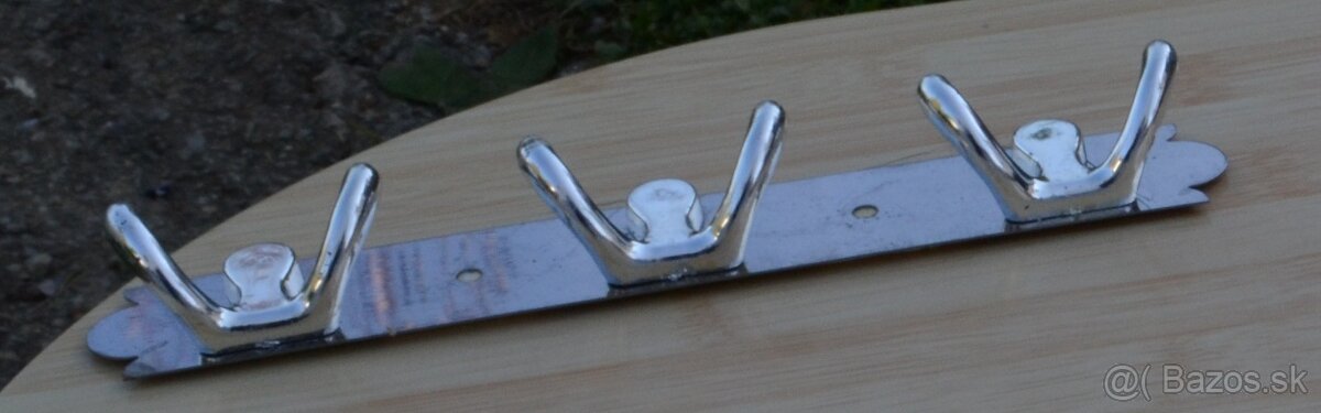 Predám kovový vešiak, ešte nepoužitý, môže sa upevniť na stenu buď šróbami alebo nalepením na na stenu pomocou lepiacej pásky.