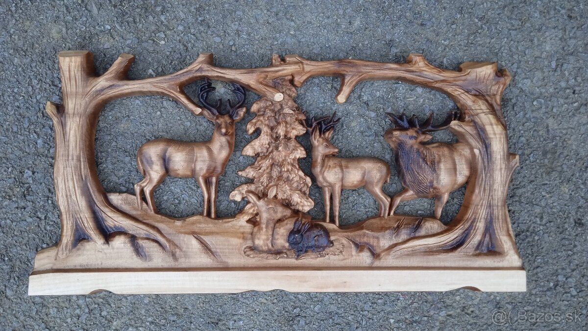 Ponúkam na predaj drevorezba obraz poľovnícky motív rozmer 65x30x5 cm cena je 75€+pošta alebo osobný odber Chlebnice