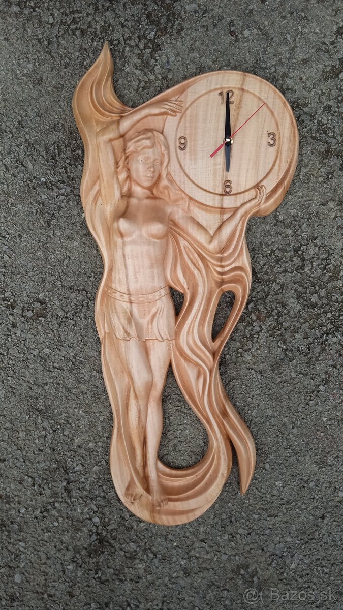 Ponúkam na predaj drevorezba nástenné hodiny žena materiál lipa rozmer 70x33x5 cm cena je 130€+pošta alebo osobný odber Chlebnice
