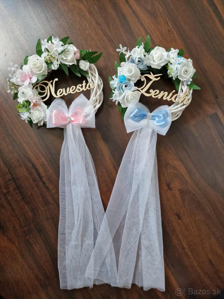 Pasy a masle na vyzdobu domu nevesta ruzova, zenich modra, rozmery poslem.