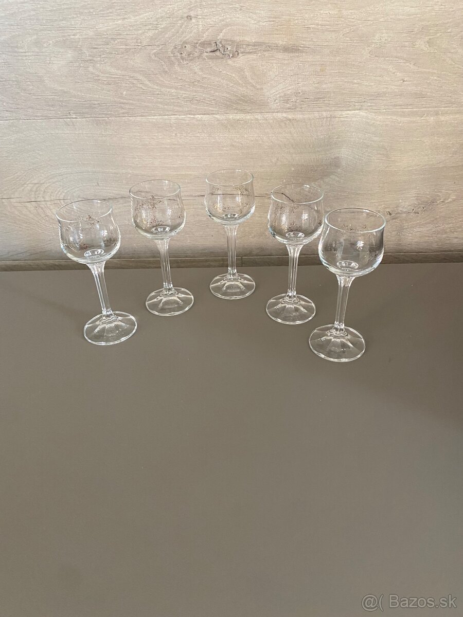 Predma retro poháre na liker-5 kusov, zlatý vzor sa zošuchava. iba osobný odber. Cena symbolicka 5 eur