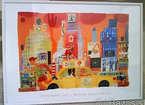 Predám obraz- mesto, s bielym rámom + sklo. V:51cm, Š:71cm.