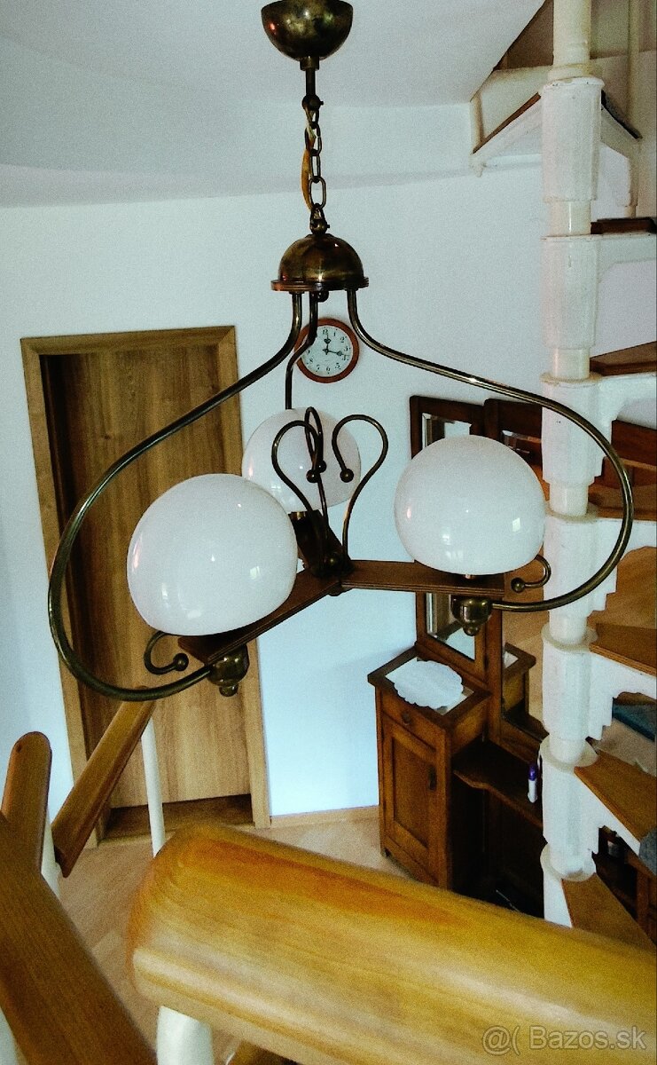 Mosadzný maximálne zachovalý starožitný luster Poľského výrobcu Polam-Meos bez poškodení. Ojedinelý kúsok zo 70-80tich rokov v kombinácii mosadz drevo bez poškodení.