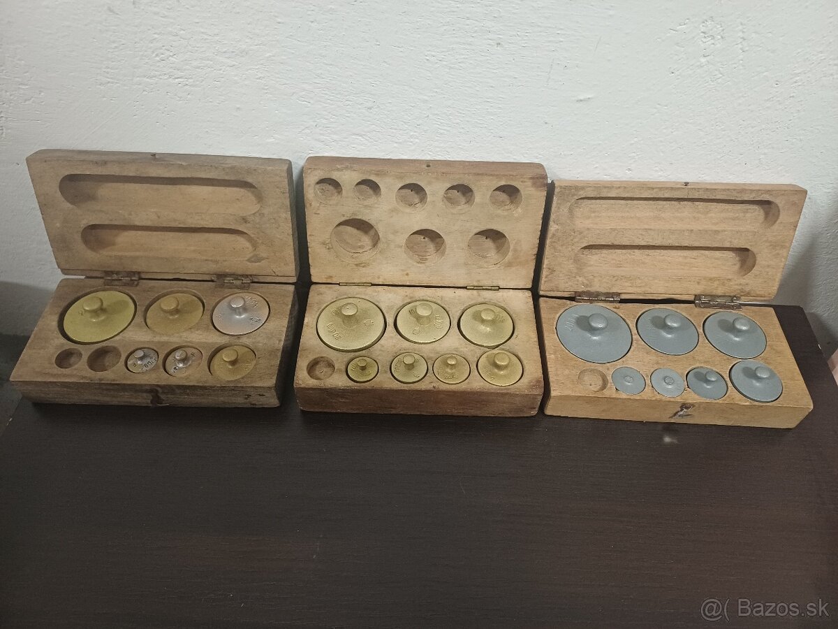 Mosadzné závažia - [28.12. 2025]predám starožitné závažia, medzivojnové obdobie, 20€...neúplná sada 15€...chýba najmenšie závažie...