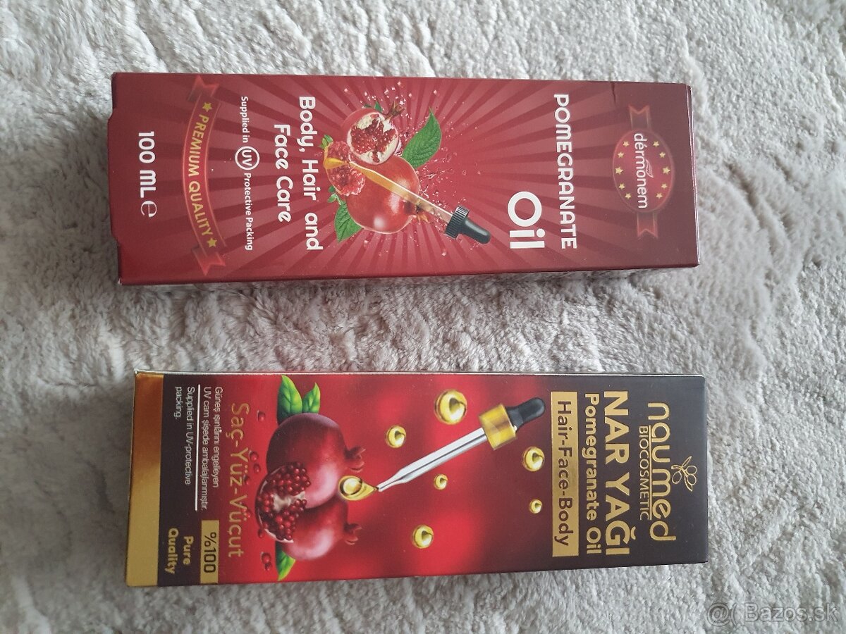 Predám oleje z granátového jablka z Turecka na telo, tvár a vlasy 100ml. 2 druhy.Cena za kus 9eur. Poštovné podľa tarif SP.